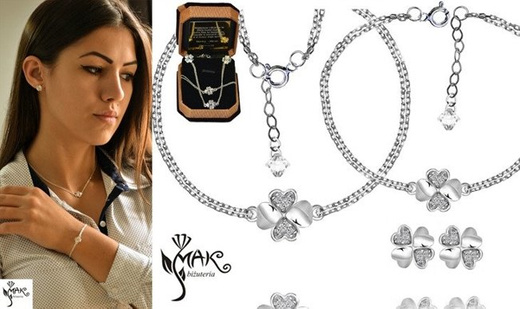 KPL721 koniczynka Swarovski Elements KOMPLET+ pudełko z grawerem