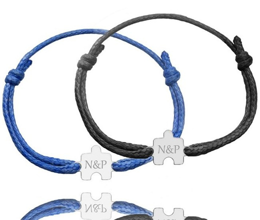 1033 bransoletki dla pary z grawerem puzzle na sznurku regulowane