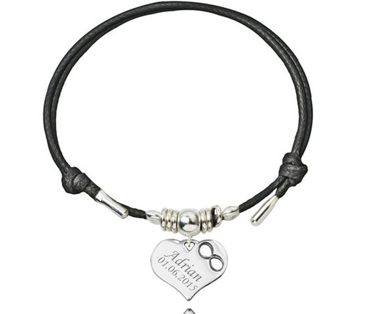 BR967 BRANSOLETKA Z GRAWEREM srebrna na sznurku serce chłopiec