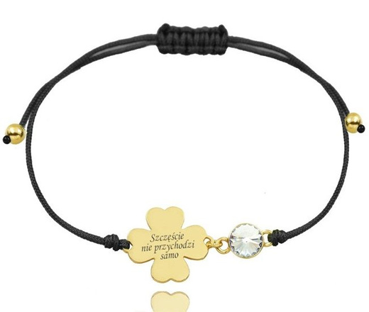1038 BRANSOLETKA Z GRAWEREM koniczynka złota na sznureczku