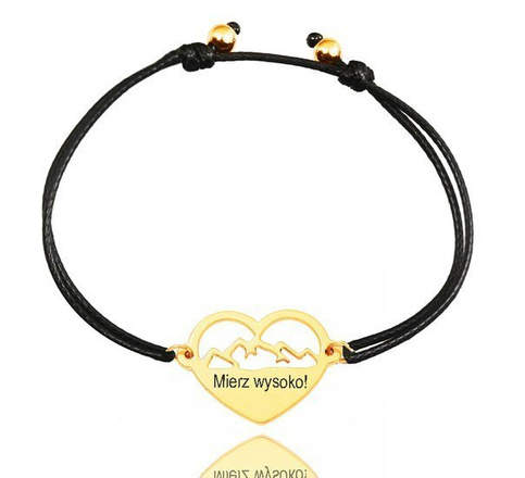 1267 BRANSOLETKA z grawerem na sznureczku, górskie szczyty, góry złote.