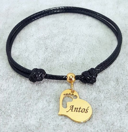 BR1001 bransoletka z grawerem serce stópki na sznurku