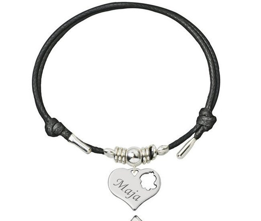BR962 BRANSOLETKA Z GRAWEREM srebrna na sznurku serce, koniczynka, puzzel