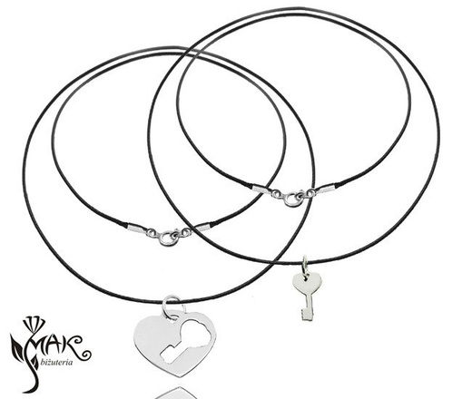 Nk908 NASZYJNIKI Z GRAWEREM DLA PARY KOMPLET serce kluczyk