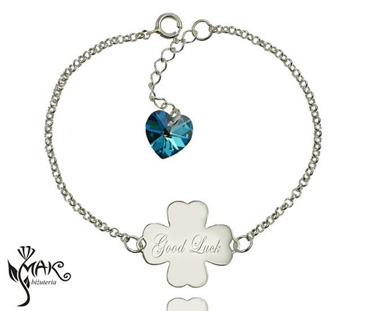 BR576/4 BRANSOLETKA Z GRAWEREM koniczynka Swarovski