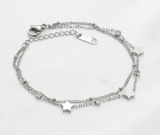 Bransoletka cyrkonią i kuleczkami, podwójny łańcuszek 1857/25