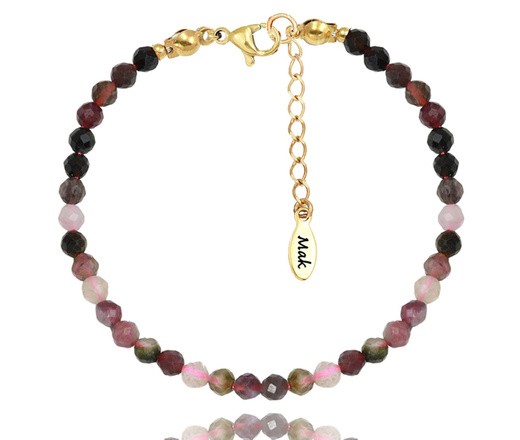 1728/12 bransoletka z turmalinem tęczowym złocona na gumce