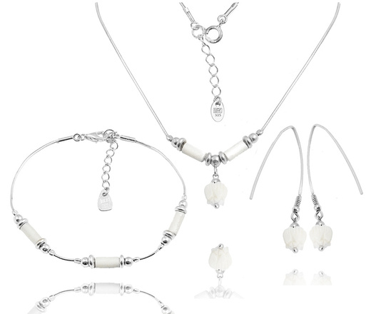 1499 komplet srebrny 925 kwiatuszki z masy perłowej