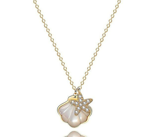 1064/26 Naszyjnik srebrny 925 pozłacany, muszelka z masą perłową i rozgwiazdą