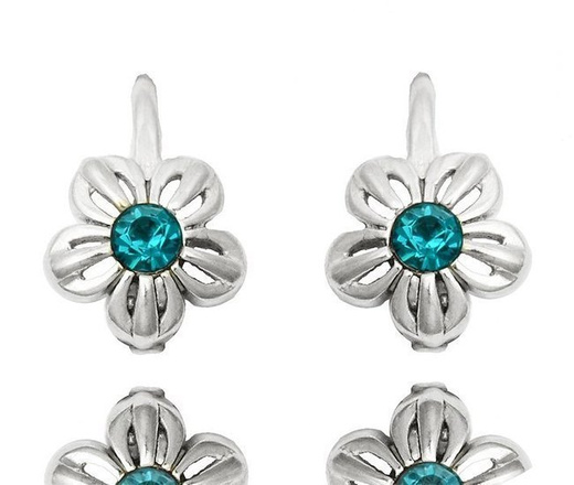 480/282 kolczyki srebrne 925 dla dziewczynki, morska cyrkonia kwiat ażurowy