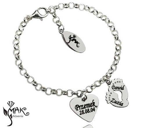 BR818 stópki serce BRANSOLETKA z GRAWERUNKIEM laser
