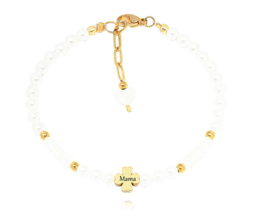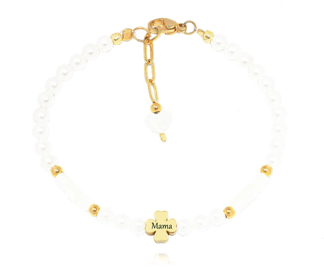 1530 bransoletka z perełkami i koniczynką dla mamy