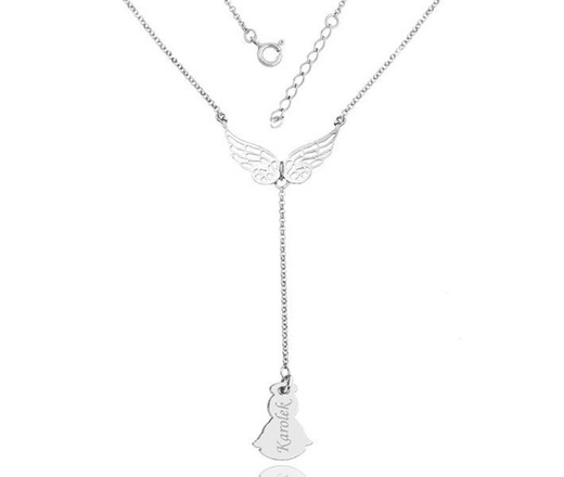 1131 naszyjnik z grawerem krawat, srebrna 925 skrzydełka anioła