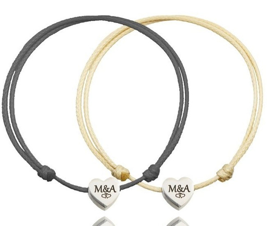 1080 bransoletki dla pary na sznureczku serca z grawerunkiem stalowe