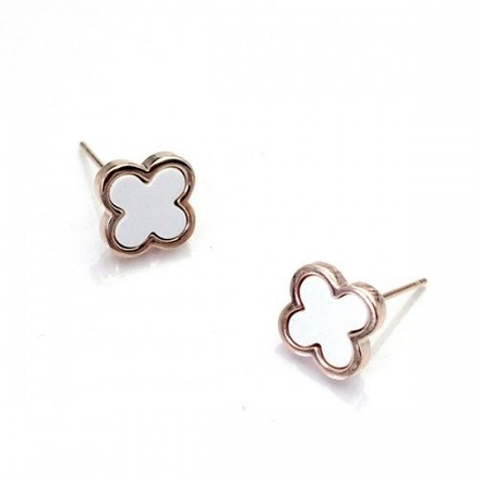 Kol 599/767 kolczyki koniczynki emaliowane,różowe złoto