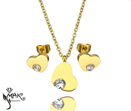 Kpl821/2 komplet serca złote stal szlachetna cyrkonia