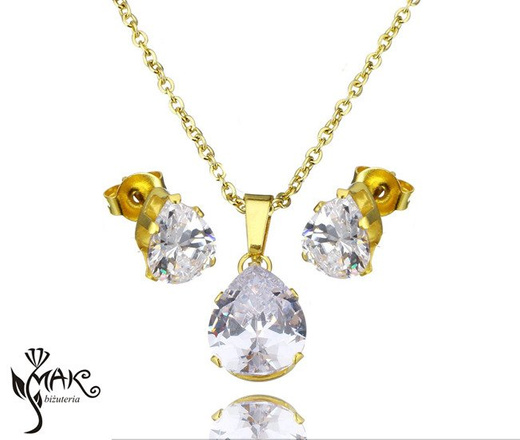 Kpl821/1 komplet łezki stal szlachetna złote łezki