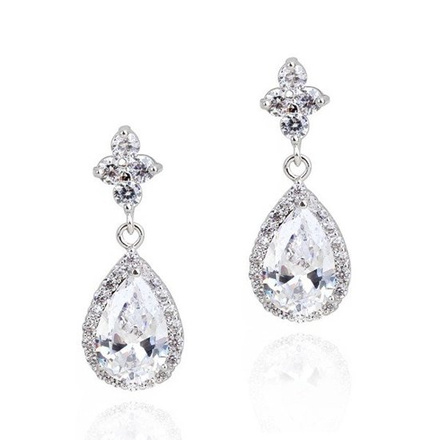 Kol 599/667 KOLCZYKI ślubne, cyrkonie łezki i mały kwiatuszek