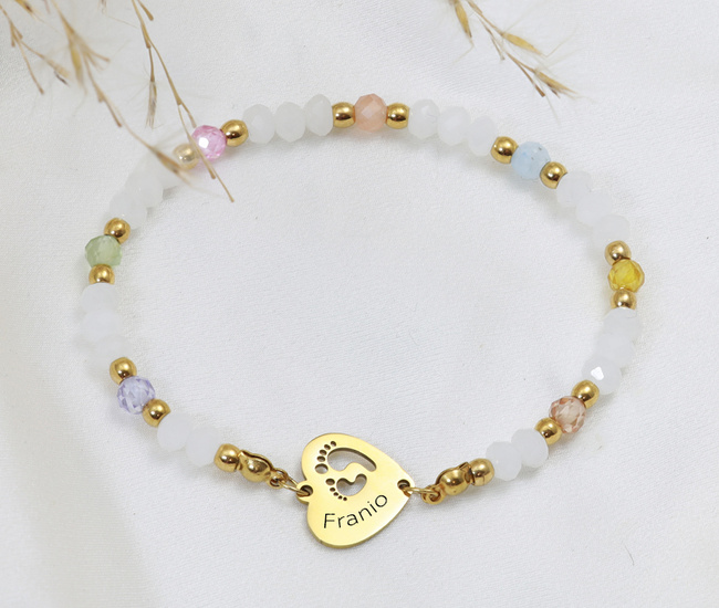 Bransoletka grawerowana i sercem ze stópkami kamienie naturalne 1889