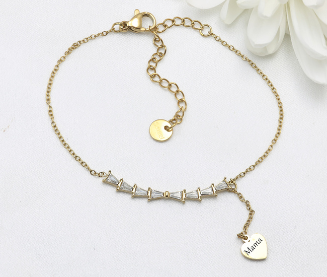 bransoletka z grawerem, cyrkonie stal pozłacana 1878/4