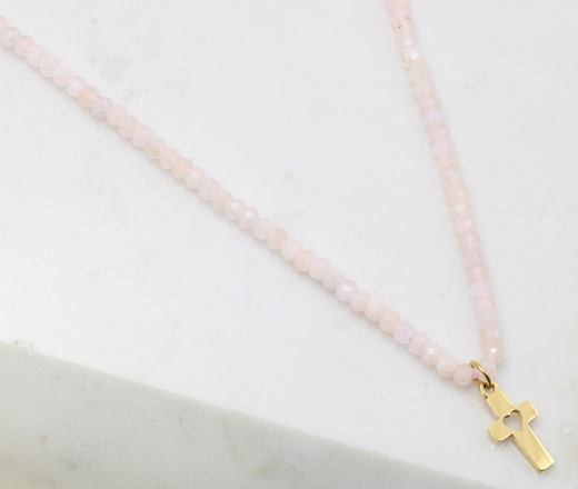 Naszyjnik z krzyżem i kamieniami naturalnymi (kunzyt) 1799/11
