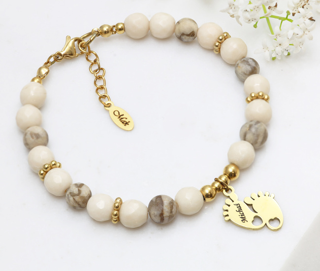 Bransoletka na Baby Shower z grawerem i kamieniami naturalnymi dla mamy 1794/18