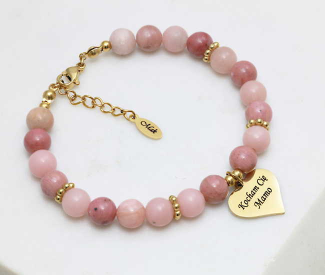 1780 różowa bransoletka pozłacana z grawerem i kamieniami naturalnymi Premium