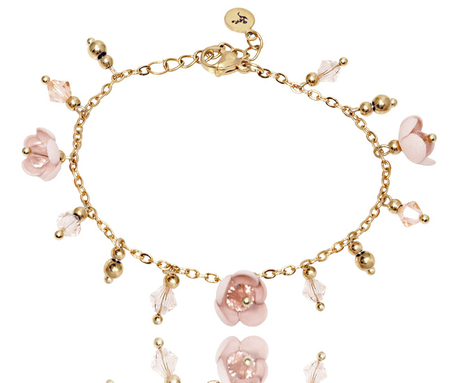 bransoletka pozłacana z kwiatuszkami i kryształami handmade pudrowy róż 1816/3