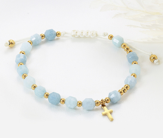 Bransoletka różaniec niebieska 1758/7, kamienie naturalne akwamaryn