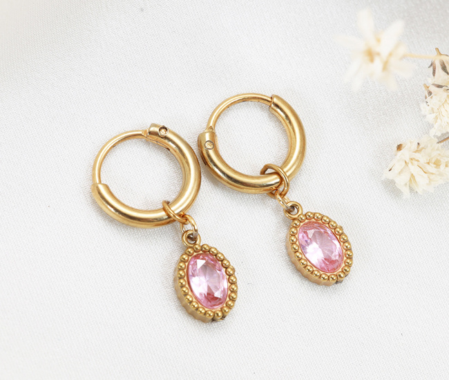złocone kolczyki z różową cyrkonią 1765/1