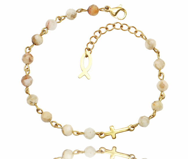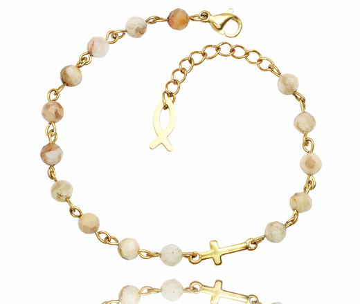 1734/10 beżowo-różowa bransoletka pozłacana z grawerem i kamieniami naturalnymi Premium