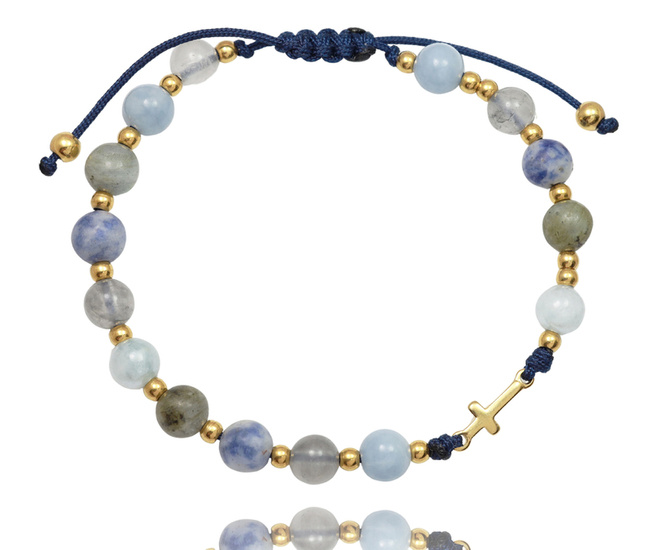 1737/2 niebieska bransoletka różaniec złocona z kamieniami naturalnymi