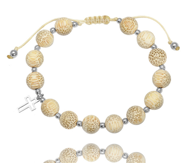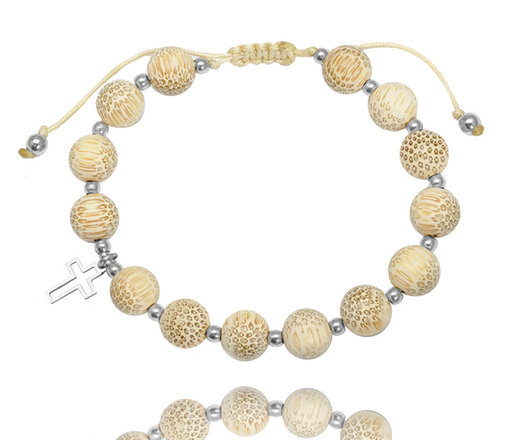 1721 różaniec na rękę z koralikami bambusowymi srebrna