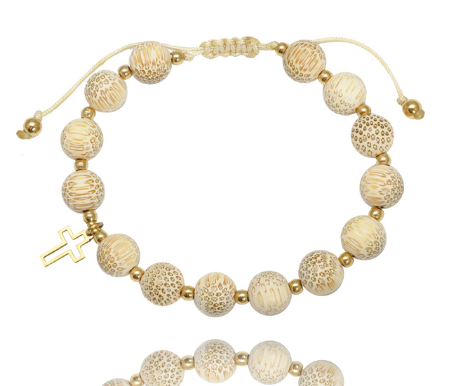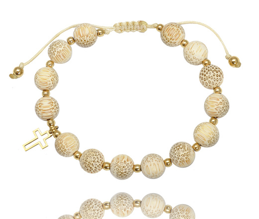 1721 różaniec na rękę z koralikami bambusowymi pozłacana