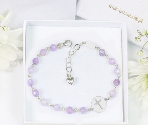 1716/2 bransoletka srebrna 925 różaniec z ametystem