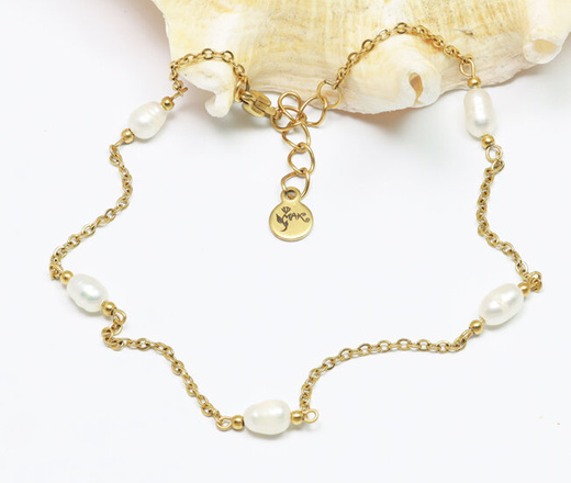 1646/1 bransoletka stalowa pozłacana na stopę z perłami naturalnymi