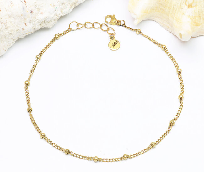 1646/2 minimalistyczna bransoletka stalowa pozłacana na stopę z kuleczkami