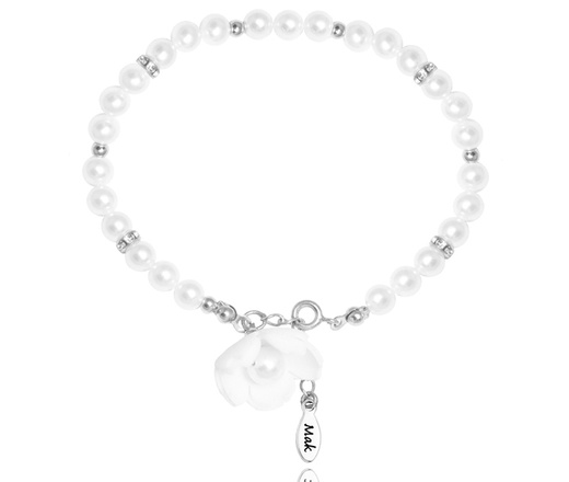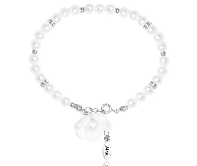1665 bransoletka ślubna z perłami i kwiatem srebrna