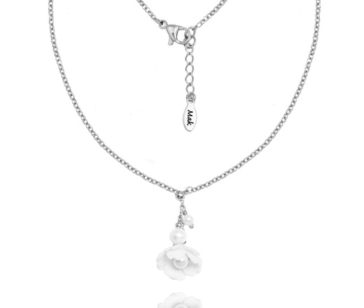 1663 naszyjnik ślubny perły z kwiatami elegancki srebrny 925