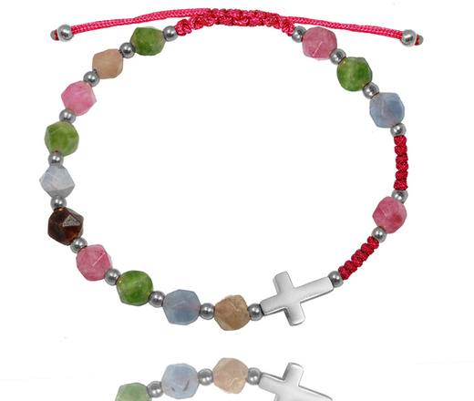 1657 bransoletka męska grawerowana stalowa kamienie naturalne i krzyżyk