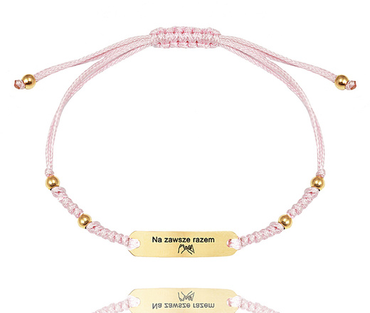 1570/5 bransoletka srebrna 925 różowa wstążka amazonka z grawerem i kryształkami