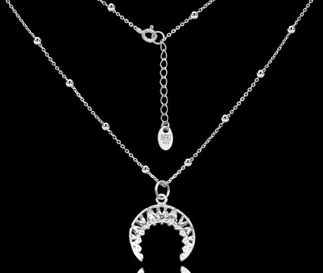 1575 Naszyjnik srebrny 925 ażurowy księżyc, róg obfitości