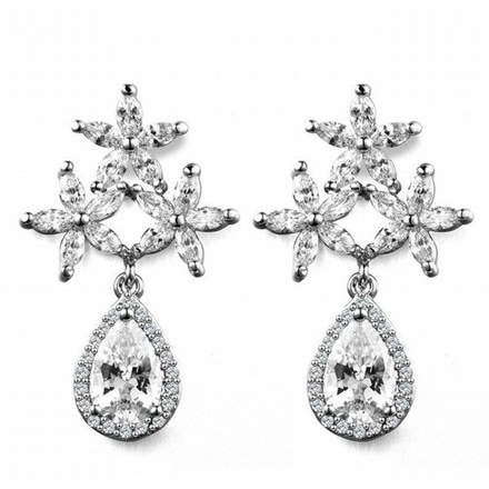 Kol 599/869 Kolczyki na ślub, łezka i kwiatuszki z cyrkonią sztyft
