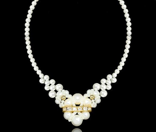 1367 naszyjnik srebrny pozłacany z perełkami i kryształkami
