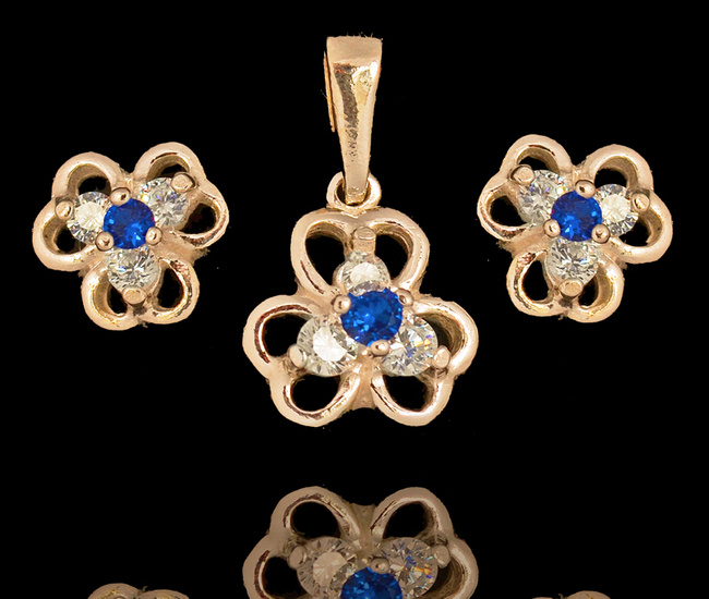 480/459 Komplet wykonany ze srebra 925 pozłacane koniczynki