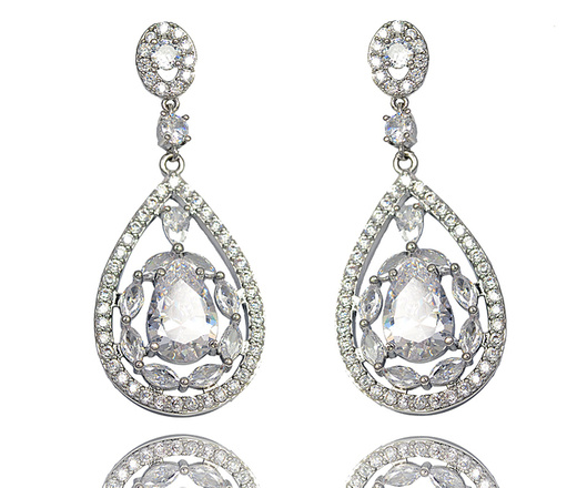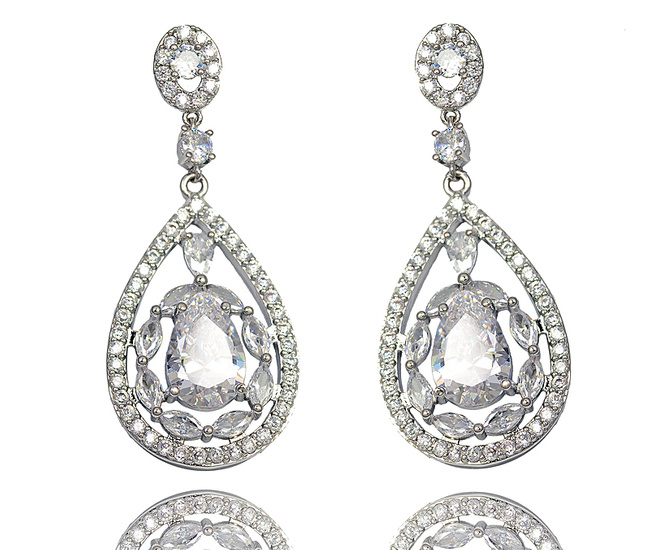 Kol 1291/2 Kolczyki ślubne z cyrkoniami łezki eleganckie