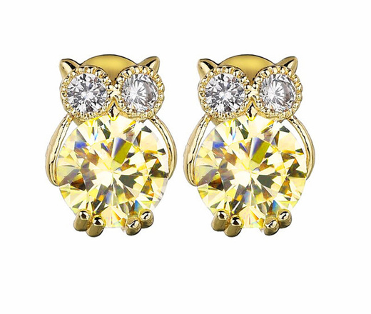 Kol 599/1068 KOLCZYKI Sowy sówki pozłacane cyrkonie crystal