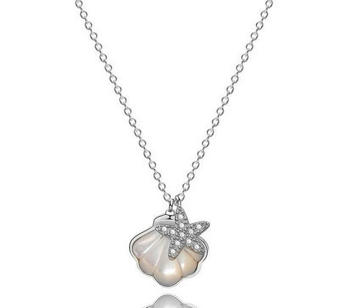 1064/28 Naszyjnik srebrny 925, muszelka z masą perłową i rozgwiazdą
