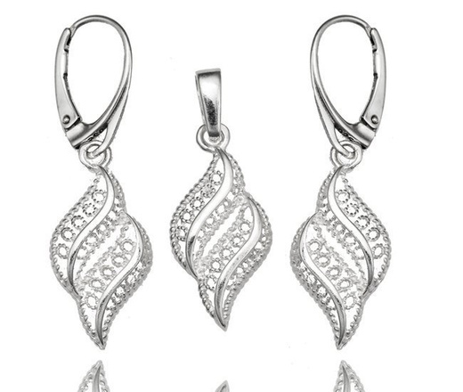 480/349 komplet srebrny ażurowy kolczyki wisiorek