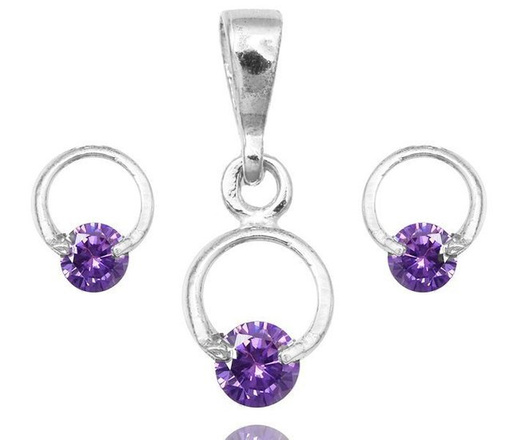480/333 Komplet srebrny 925, cyrkonią fioletową kolczyki, wisiorek .